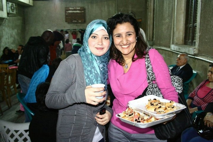 Na de dienst gaan we naar de binnenplaats van de kerk voor verdere ontmoeting onder het genot van thee en hartige hapjes. Ik vraag aan enkele mensen hoe ze terugkijken op de bijeenkomst. Een moslim vindt het fantastisch dat we zo samen konden zijn. Een gemeentelid is ook enthousiast: “Onder moslims doen soms verhalen de ronde dat christenen in hun kerken wapens hebben of gekke dingen doen op seksueel gebied, maar nu hebben ze kunnen zien hoe we echt zijn.” Een paar maanden geleden had ds. Tharwat dat verhaal van die wapens ook al eens in een preek aan de orde gesteld. Hij zei toen dat hij voor een krant een artikel had willen schrijven onder de titel: “Inderdaad, wij hebben een wapen in de kerk,” waarbij hij dan uit zou leggen dat dit wapen het gebed is, maar hij vreesde dat sommigen alleen de titel zouden lezen, en daarom beperkte hij zich maar tot een preek over dit onderwerp.