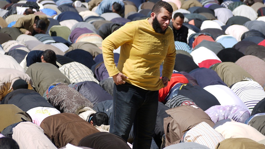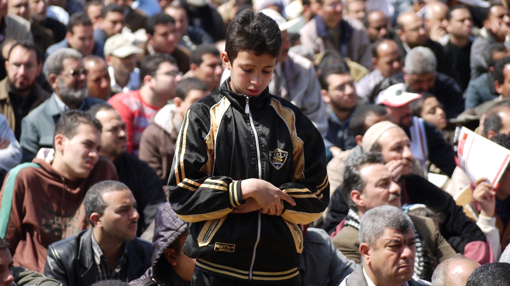 De preek is onder andere een oproep om als moslims en christenen samen nee te zeggen tegen corruptie. Wanneer de moslims massaal neerbuigen om te bidden zie ik langs de zijrand diverse mensen met kruizen staan. Wanneer de moslims weer opstaan, wordt er luid gescandeerd: “Moslim, christen, één hand.” “Eén hand” (ied wahda) betekent: laten we de handen ineen slaan, en misschien ook: laten we samen een vuist maken.