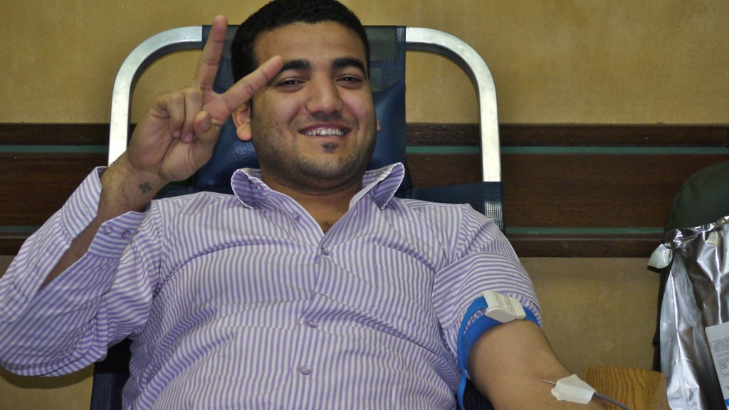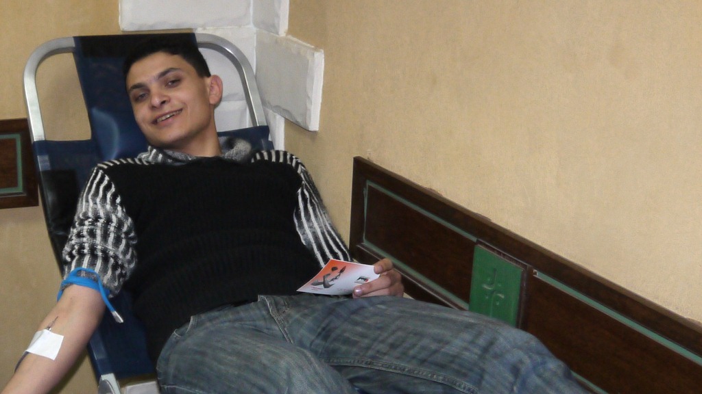 In principe is het geen probleem, krijg ik te horen, maar in praktijk is er wel een lastige hobbel: de vragenlijst die je vooraf in moet vullen is alleen beschikbaar in het Arabisch. Een student die redelijk Engels kent, wil wel helpen, maar loopt al snel vast. De dokter die het geheel overziet, schiet te hulp. Ze spreekt de taal niet vloeiend en haar uitspraak niet optimaal, maar in elk geval beheerst ze de Engelse medische terminologie goed, beter dan ik zelf. Gelukkig heb ik in Amsterdam de vragenlijst vaak genoeg ingevuld om te weten dat ik op grond van die lijst nu gewoon bloed zou kunnen geven. Met wat heen en weer praten krijgen we alle vragen toch beantwoord en kan ik een handtekening zetten. Een opvallend verschil met Nederland is dat de vragenlijsten worden besproken waar iedereen bij is.