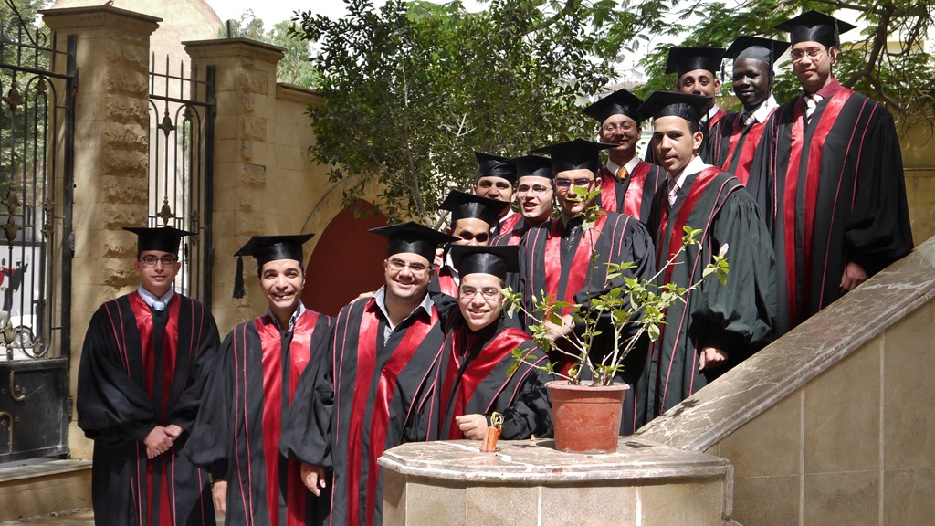 Eergisteren schreef ik over taliban, talaba en leerjongeren. Vanwege de commotie rond de “poldertaliban” vlogen de bezoekersaantallen van mijn weblogs (hier en op http://weblogs.refdag.nl) omhoog. Omdat Afghanistan en Nederland, taliban en “poldertaliban” ver van mijn bed zijn en dit een weblog over het leven in Egypte is, houd ik me nu weer bij mijn leest en geef ik alleen enkele foto’s van Egyptische talaba die eergisteren op een tentamen verzoeningsleer zwoegden, gisteren een gezellige avond met ons als docententeam een gezellige avond hadden en vanmorgen alvast in officieel afstudeertenue poseerden. Ik hoop dat deze talaba een heilzame invloed mogen hebben op kerk en samenleving in Egypte.