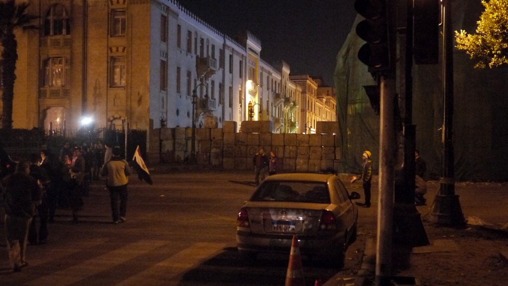De zijstraat is afgezet met een hek, maar daar kunnen we te voet wel langs. De volgende straat richting kerk en Tahrirplein is echter afgesloten met grote rollen prikkeldraad, zodat we nog een grotere omweg moeten maken. Behalve geparkeerde pantserwagens en legervoertuigen is er in onze straat weinig verkeer. Hoewel de agenten en de soldaten die de boel bewaken ons vriendelijk groeten is de sfeer beklemmend en een beetje grimmig. Dit is niet het Egypte dat ik kende, noch het land waar de Egyptenaren van droomden.