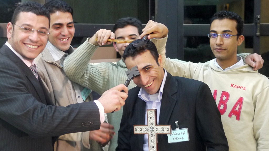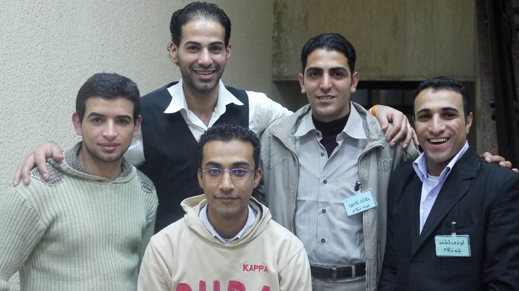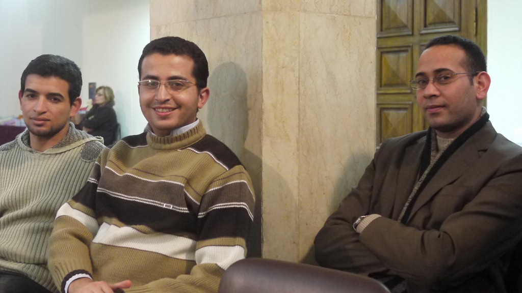 De bezoekers komen deels van verre: de oudstudent rechts is thans in de provincie Asyut woonachtig, op ruim vierhonderd kilometer afstand van het seminarie. De oudstudent links van de kolom woont in de provincie Minya, nog altijd meer dan tweehonderd kilometer bij ons vandaan. Hij kon zijn conferentiebezoek echter combineren met andere verplichtingen in Caïro.