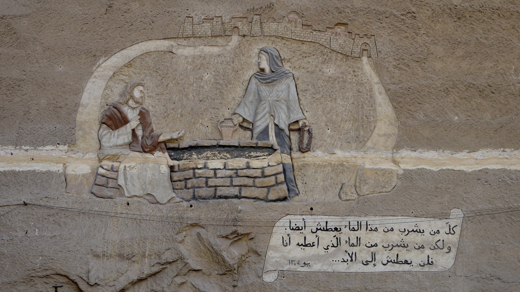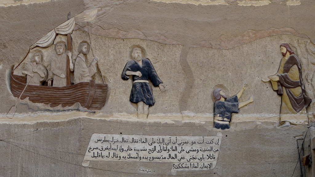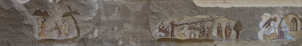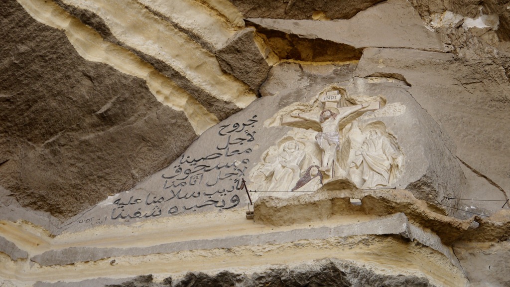 Deir Samaan (het Simeonklooster) in Cairo, beter bekend als de grotkerk of de rotskerk, is onder andere beroemd om de eigentijdse Bijbelse kunst op de rotswanden. Hieronder enkele voorbeelden.