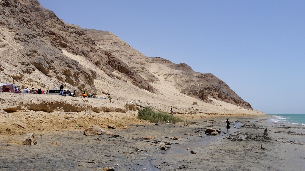 Wanneer we bij de Mozesbronnen komen – die worden geïdentificeerd met het Bijbelse Elim –, houdt een Braziliaans reisgezelschap een openluchtdienst. Zoals het hoort maken we ook een stop bij het bad van farao, een onogelijke grot met een warmwaterbron, sinds recent alleen bereikbaar via een wat ingewikkelde omweg, maar niettemin de moeite waard vanwege het mooie landschap: een strook strand (deels groen gekleurd door het warme mineraalrijke bronwater) tussen heuvels en de Golf van Suez.