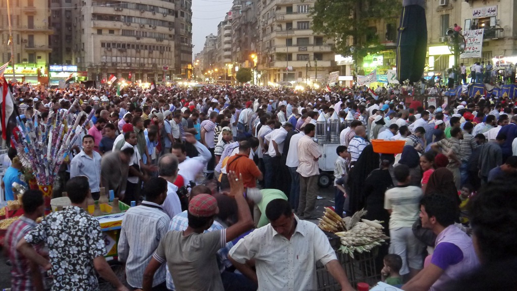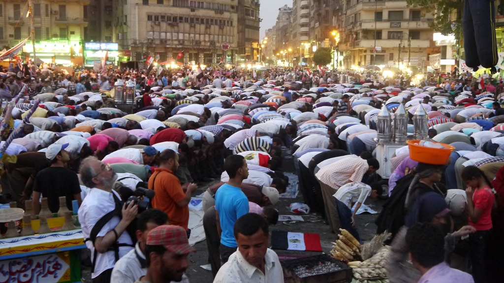 De aanblik van het plein is braderie-achtig doch zonder feeststemming. Van een woedende volksmassa is echter evenmin sprake. Mij wordt geen strobreed in de weg gelegd wanneer ik mijn camera pak om een menigte biddende mannen te fotograferen. Een jongen pakt ondertussen zijn telefoon en schiet van mij een plaatje, dat hij me vervolgens vol trots toont. Niet wetend wat er verder staat te gebeuren loop ik na het gebed het Mursi-plein af om terug te keren naar het Shafiq-seminarie in een taxi waarvan de chauffeur beide presidentskandidaten niet ziet zitten. Aller vraag is wat morgen brengen zal.