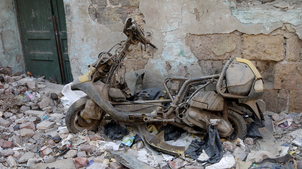 Hoewel het paleis niet direct aan de hoofdroute gelegen is, doet deze omschrijving vermoeden dat een ommetje van een paar honderd meter de moeite waard is. Wanneer men eenmaal aangekomen is, is het eerste wat opvalt een scooter die misschien als monument en misschien als modern kunstwerk gedacht is.