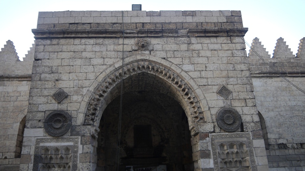 Menigmaal heb ik mij verwonderd waarom zo’n grote moskee buiten de stadsmuur werd gebouwd, maar Caroline Williams, Islamic Monuments in Cairo: The Practical Guide, 6e druk (Caïro: American University in Cairo Press, 2008), 250 geeft een antwoord: in dit gebied woonden in de dertiende en veertiende eeuw vluchtelingen uit Irak en Syrië, ontheemd door de Mongoolse verwoestingen aldaar.