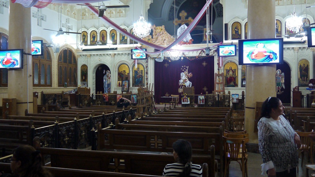 Een vriendelijke bewaker vertelt mij dat de kerk een straat verderop [in zuidwestelijke richting] staat. Daar aangekomen wordt mij meteen vol trots vertelt dat er zelfs twee kerken staan en dit gegeven wordt later door verschillende personen nog eens herhaald, zonder spoor van verdriet over de verdeeldheid van het lichaam van Christus, maar ook zonder spoor van kritiek op de ander. De ene kerk is orthodox—wat in Egypte zonder nadere toevoeging koptisch-orthodox betekent—; de andere is katholiek.