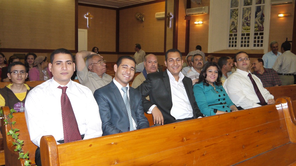 Donderdag 12 juli 2012. Na een vertraagde treinreis arriveer ik half zeven ‘s avonds op het station van Asyut in het hart van Egypte om om half acht de bruiloft van kand. Anes Onsy bij te wonen. Kand. Safwat Aatef, zelf drie maanden geleden getrouwd, brengt mij van het station naar het nabijgelegen huis van zijn schoonfamilie waar ik mij om kan kleden en dan gaan we samen met zijn zwangere vrouw naar de kerk waar het huwelijk zal worden voltrokken. Tegelijk met het bruidspaar arriveren we bij de kerk—de timing kan niet beter.