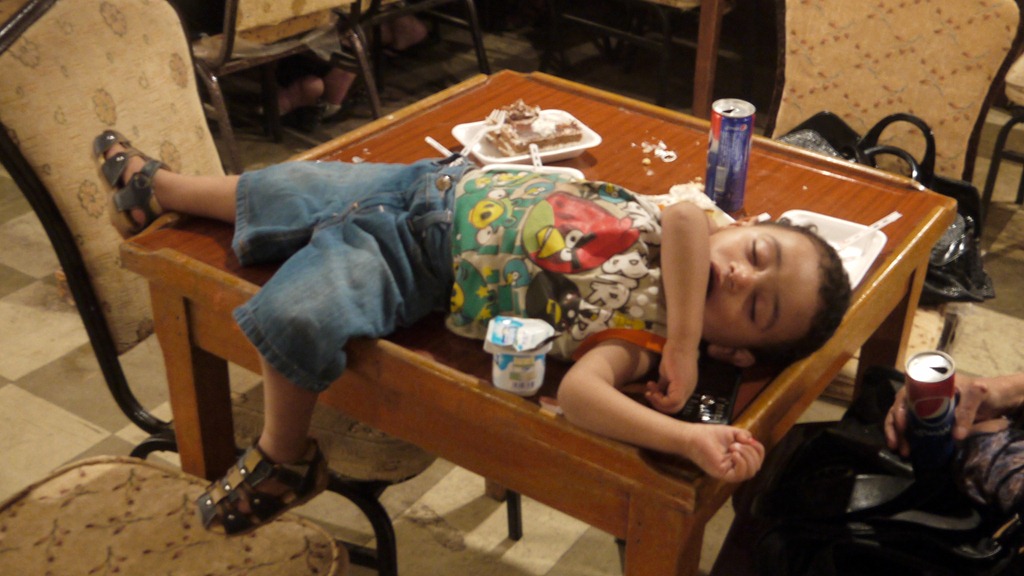 Terwijl de voormalige veerboot rondvaart en ik begin te voelen dat ik tussen trein en kerk geen avondmaaltijd heb genuttigd, wordt de bruidstaart aangesneden en krijgt ieder een groot stuk gebak. (Naar mij is verteld was het vroeger bij Opper-Egyptische bruiloften standaard om alle gasten een vleesgerecht voor te zetten, maar heeft de kerk enkele jaren geleden de oproep gedaan met die gewoonte te breken omdat mensen er onverantwoord veel geld voor uitgaven.)