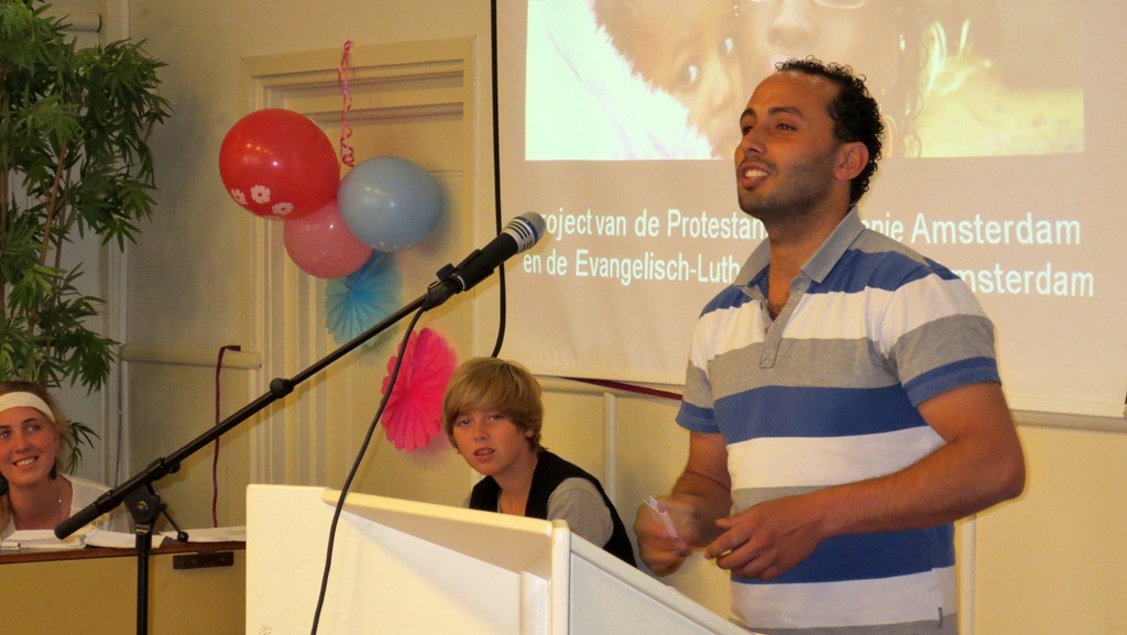 De collecte vandaag is niet voor Hebron zelf maar een cadeau voor het werk van het Wereldhuis ten behoeve van ongedocumenteerden in Amsterdam en wordt met verve door Hany uit Egypte aangekondigd.