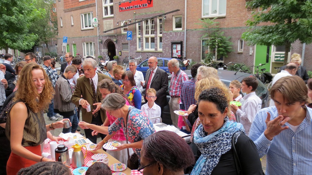 Overvol is het deze zondagmiddag in het gebouw in de Spaarndammerbuurt, want vandaag wordt gevierd dat “Kerk in Hebron” tien jaar bestaat—hoewel enkele ouderen weten dat hier in een grijs verleden ook al diensten werden gehouden.