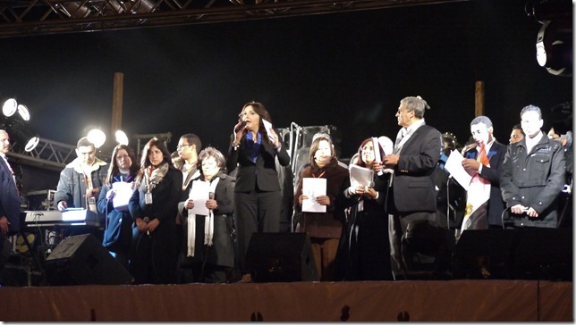 Het volgende lied is spannender want het heet “Immanuël” en verwijst expliciet naar Christus. Ds. Sameh legt het echter mooi uit aan de moslims: “Zoals jullie weten is het bijna kerstfeest (namelijk op 7 januari) en vieren we de geboorte van Jezus, Die ook door jullie wordt hooggeacht. De naam ‘Immanuël’ betekent ‘God met ons’ en dat willen jullie toch ook, dat God met ons is in het nieuwe jaar?” Dat God in Jezus Christus met ons is wordt net niet hardop gezegd, want dat zou nu een brug te ver zijn. Hoewel, voor zover ik heb kunnen nagaan, deze avond met geen woord de hoop of oproep is uitgesproken dat moslims christen zullen worden, is de student van ons seminarie enthousiast over de aanpak van ds. Sameh: “Dit kan moslims tot Christus brengen.” In elk geval mag het met recht opmerkelijk heten dat Egypte midden op het Tahrirplein met christelijke liederen het nieuwe jaar inluidt. Voor de revolutie was dit eenvoudigweg ondenkbaar.