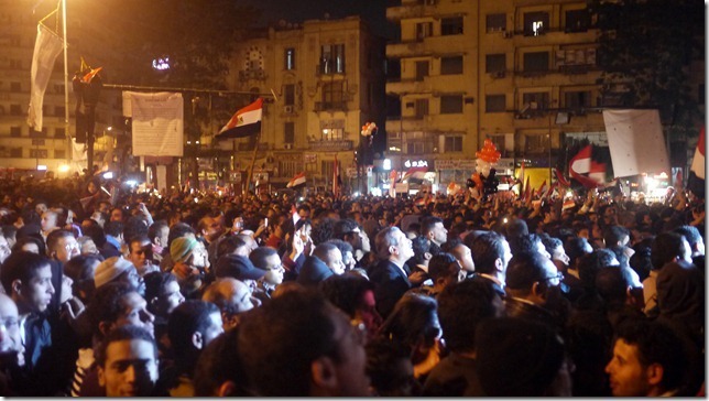 Tot zover was alles nog slechts opmaat. De eigenlijke uitluiding van het jaar zal niet in de kerk maar op het Tahrirplein plaatsvinden. Daar houden moslims een eindejaarsfeest (enigszins opmerkelijk, want veel moslims hechten weinig waarde aan de jaarwisseling volgens de christelijke kalender, hoewel die kalender in Egypte in het dagelijks leven wel breed is ingeburgerd) en zij hebben de christenen van Kasr el-Dubara nadrukkelijk uitgenodigd om mee te doen aan het feest.