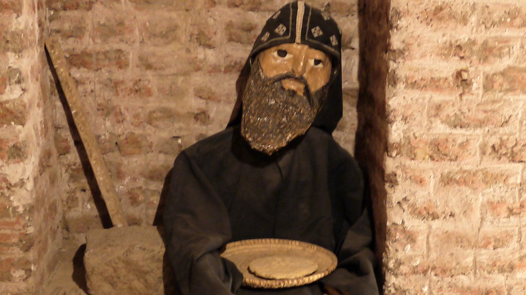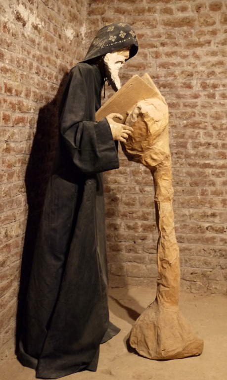 In de toren van het Verbrande Klooster bevindt zich een aardig “monnikenmuseum.” De toren was vroeger de “vaste burcht” waarin de monniken zich konden terugtrekken wanneer het klooster werd aangevallen. Wanneer de houten loopbrug werd opgehaald, kwam niemand de toren meer in of uit.