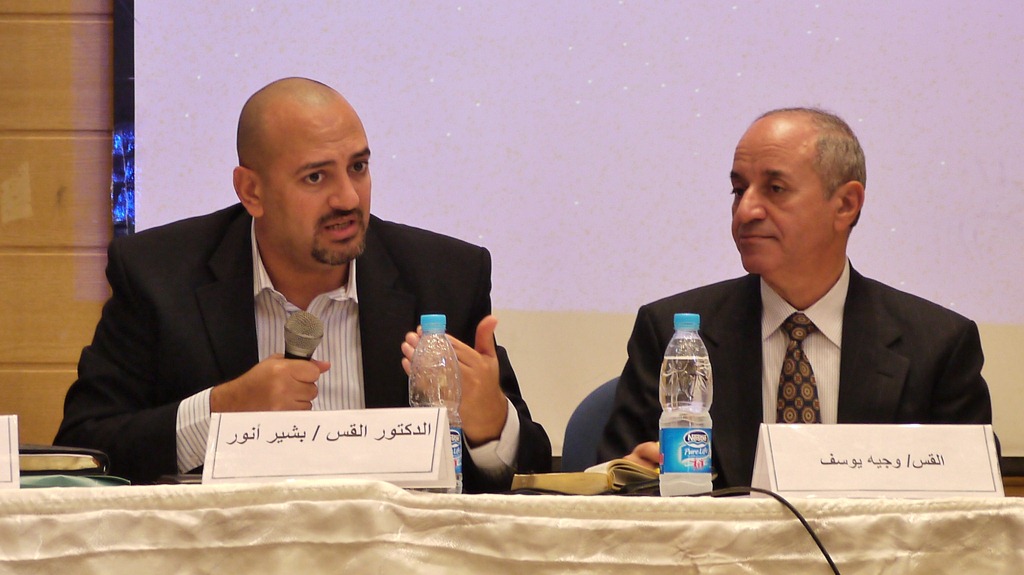 Vervolgens krijgt dr. Atef, de rector van ons seminarie, het woord. Hij wijst erop dat het belijden van de kerk onder omstandigheden is ontwikkeld. In de geloofsbelijdenis van Nicea werd bijvoorbeeld veel gezegd over Christus en maar enkele zinnen over God de Vader en over de Heilige Geest, omdat het op dat moment vooral belangrijk was het arianisme te beantwoorden. Evenzo was de reformatie een antwoord op misstanden in de middeleeuwen en meer recent de bevrijdingstheologie een antwoord op sociale misstanden.