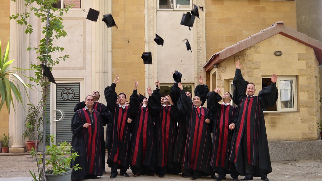 Deze week staat alles op ons seminarie hier in Caïro in het teken van afstuderen. Dinsdagavond heeft het bestuur officieel besloten/bekrachtigd wie dit jaar mag afstuderen: 14 voltijdstudenten die predikant hopen te worden, een mooie groep deeltijdstudenten en 3 masterstudenten. Woensdagavond hebben we met de afstudeerders op het dak van één van onze seminariegebouwen gegeten. Gisterenmorgen hebben de studenten geposeerd in hun “robes” (een soort toga’s, de officiële afstudeerkleding).