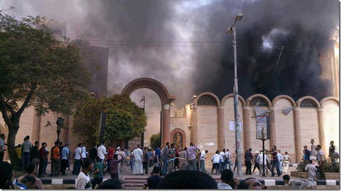 Update 14 augustus 18.30. Inmiddels wordt er gesproken over zestien afgebrande kerken, waarvan sommige van historische betekenis. De aanval op de anglicaanse kerk in Suez lijkt ook wel serieus te zijn (geweest) gezien de dringende gebedsoproep van de bisschop Mouneer.