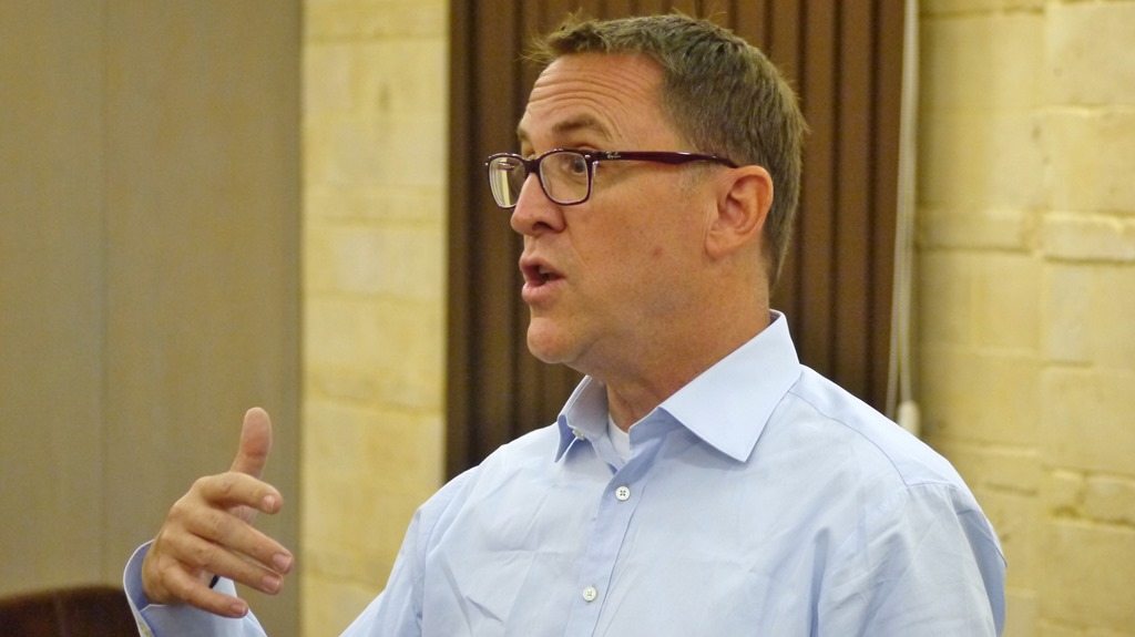 Vandaag spreekt dr. Jeff Conway van Paoli Presbyterian Church op ons seminarie hier in Caïro. Hij heeft een “doctor of ministry” (DMin) graad op het gebied van de eredienst. Zijn thema voor ons is theologie van de eredienst en speciaal participerende eredienst (participatory worship). Hij begint met een gedachte van Søren Kierkegaard: Vaak is ons beeld van de eredienst als volgt: de mensen in de bank zijn het gehoor (Engels: audience, wat ook wordt gebruikt voor de kijkers naar een toneelstuk), de prediker is de acteur en God is de souffleur; echter waarom zien we het niet omgekeerd: God is het gehoor, de predikant de souffleur en de mensen in de bank de acteurs.