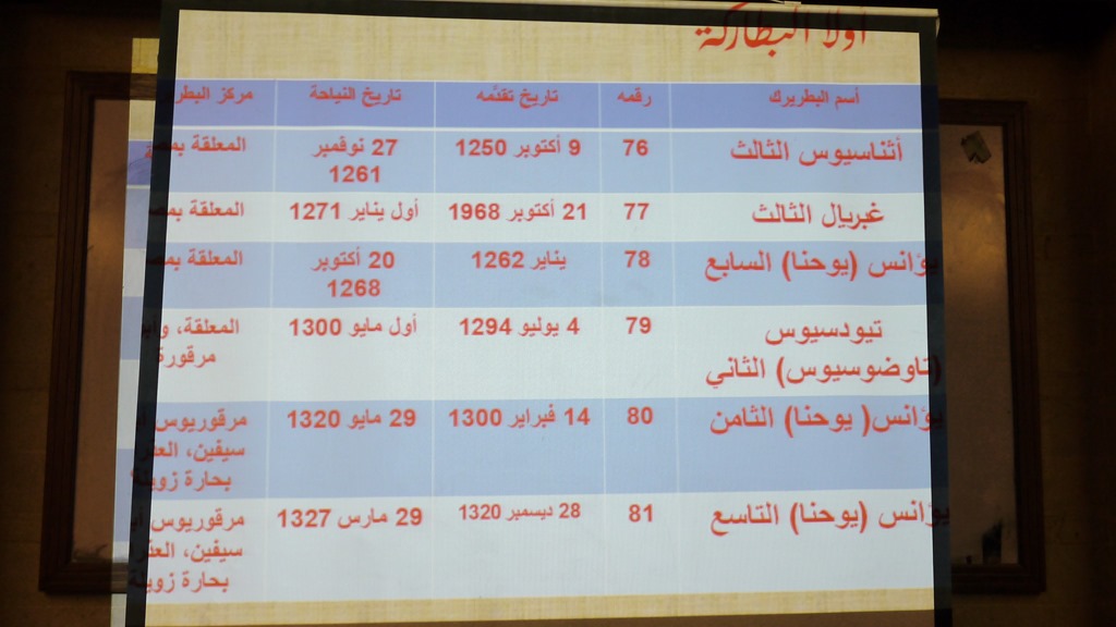 Student Mark Moner Soliman geeft een overzicht van de koptisch-orthodoxe pausen zo’n zeven à acht eeuwen geleden (uiteraard werd Gabriël III niet in 1968 maar in 1268 paus).![]()
