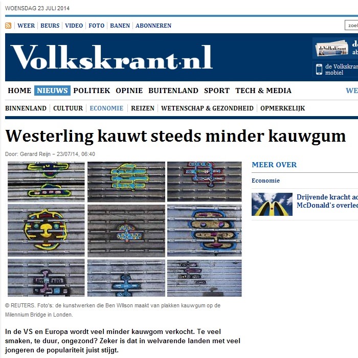 De Volkskrant had gisteren een groot komkommernieuwsartikel over de teruglopende kauwgomconsumptie in Europa en Noord-Amerika en het Nederlands dagblad nam dit vandaag over. In Egypte is kauwgom juist in opmars, althans in mijn perceptie, als wisselgeld. Hebben verkopers geen muntjes van een kwartpond (25 piasters, oftewel ca. 2,5 cent) op voorraad, dan doen ze bij het wisselgeld een minipakje met twee kauwgompjes.