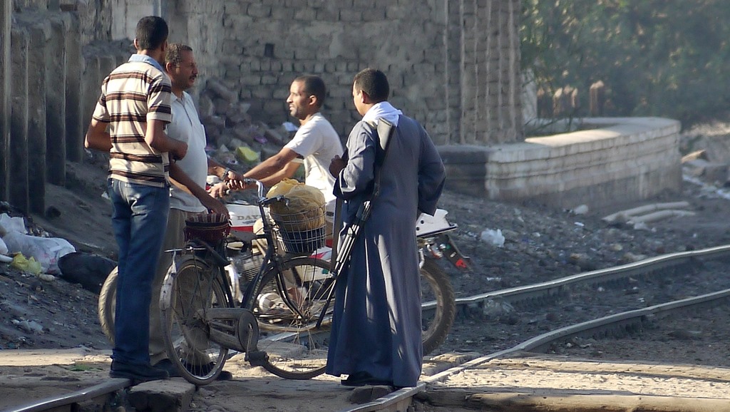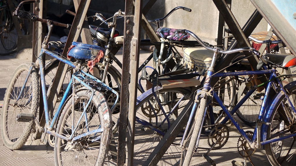In Nederland heeft elk station er één en vaak zelfs meer dan één: een stationsfietsenstalling, al dan niet bewaakt. In Egypte kent men het verschijnsel stationsfietsenstalling niet—althans, in die veronderstelling verkeerde ik tot vanmorgen omdat ik er in zes jaar nog nimmer één had bespeurd. Doch wat zag vandaag mijn oog in Dayrut (een provinciestadje zo’n 325 km ten zuiden van Caïro)? Jawel, een heuse echte stationsfietsenstalling—of, althans, een plek onder de loopbrug die de twee perrons verbindt waar enkele tweewielers bij elkander zijn neergezet.