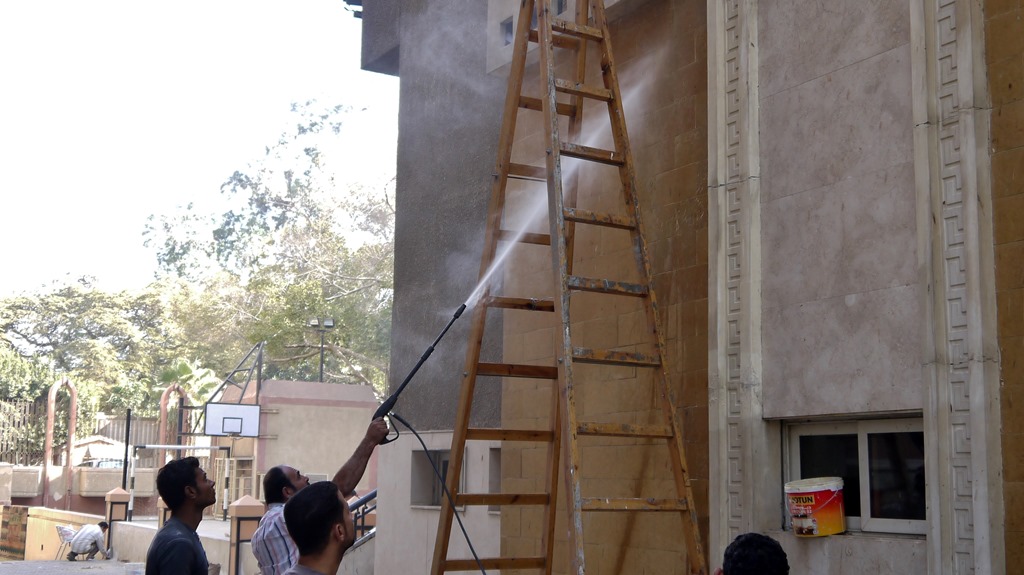 Vandaag worden echter hier in Caïro alle vooroordelen doorbroken en steken studenten daadwerkelijk de handen uit de mouwen. Volgende week moet bij de viering van het honderdvijftigjarig bestaan van het seminarie alles puntgaaf in orde zijn en daarom vindt vandaag de grote schoonmaakactie plaats.