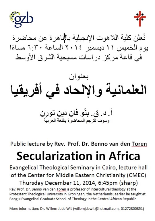 Donderdag 11 december en vrijdag 12 december 2014 hopen we hier aan het Evangelical Theological Seminary in Cairo (ETSC) een bijzondere, kleinschalige conferentie te hebben—een initiatief van prof.dr. Herman Paul, hoogleraar secularisatiestudies aan de Rijksuniversiteit Groningen namens GZB en IZB, en mogelijk gemaakt door de GZB. Onderstaande afbeeldingen lichten tipjes van de sluier op. Later hoop ik er iets meer over te schrijven.