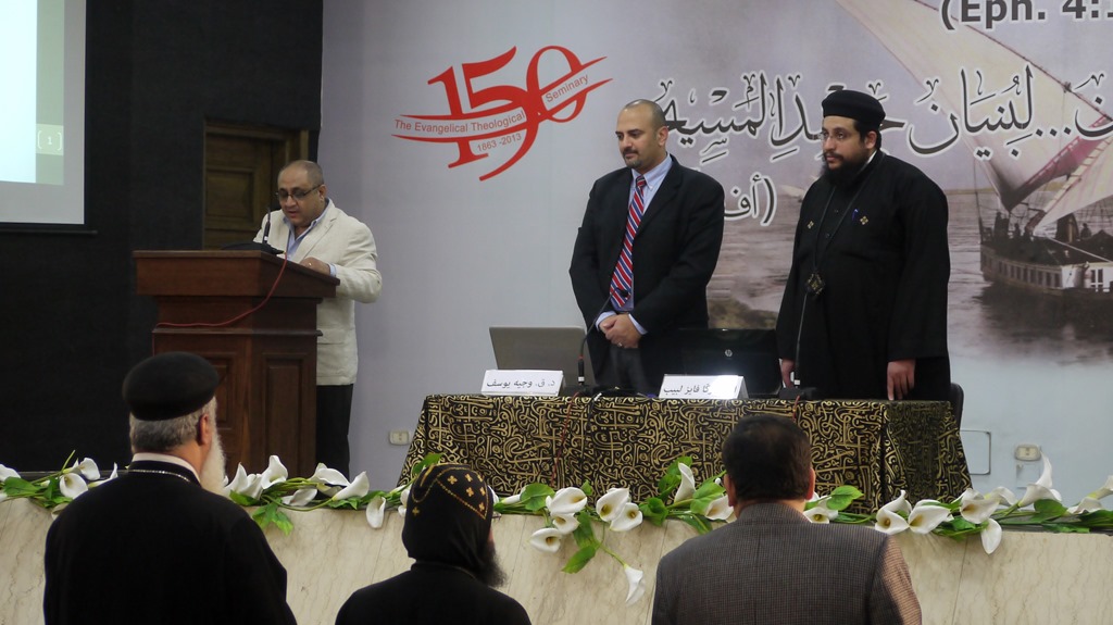 Vandaag vindt hier op het Evangelical Theological Seminary in Cairo een symposium plaats over het Syrisch christendom, georganiseerd door het Center for Middle Eastern Christianity (CMEC). Het gaat hierbij niet direct om de kerk in Syrië nu, maar om de geschiedenis van de christenen die Syrisch spraken (het Syrisch is een dialect van het Aramees en is zelf weer in te delen in een oosters en een westers dialect). De speker vandaag is Fr. Zaka Fayez Labib. Fr. Zaka wijst er onder andere op dat veel teksten die na het concilie van Chalcedon in het Grieks niet meer werden overgeleverd wel in het Syrisch zijn overgeleverd. Hij wijst ook op allerlei punten van verwantschap tussen Syrisch en Hebreeuws en tussen Syrisch en Arabisch. Teksten uit het Hebreeuws, Grieks en zelfs Koptisch (bijvoorbeeld gnostische teksten) werden in het Syrisch vertaald.![]()
