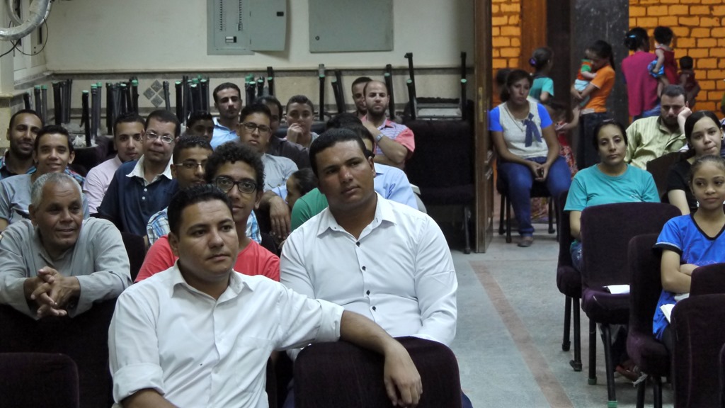 Later deze avond bezoek ik met ds. Sameh Ibrahim een dorp waar hij te gast is bij de jongerenbijeenkomst in de kerk om te spreken over de vraag of de God van het Oude Testament gewelddadig is. In deze gemeente loopt deze zomer ook student Sameh (vooraan onder) stage.