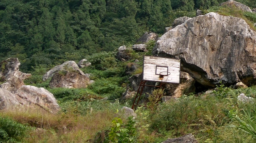 Na de herdenkingscentra kun je met een fietskarretje, tuftuf of busje over goed aangelegd paden half ingestorte en ingevouwen en scheefgezakte gebouwen gaan bewonderen en fotograferen. Nieuwe steden zijn verderop gebouwd, waardoor het oude kon blijven staan, naar men zegt mede met het oog op wetenschappelijk onderzoek naar hoe gebouwen instorten bij aardbevingen. En dan stuit je aan de rand opeens op die ruige, nu half begroeide rotsblokken met daarbij alleen nog het basketbalbord.