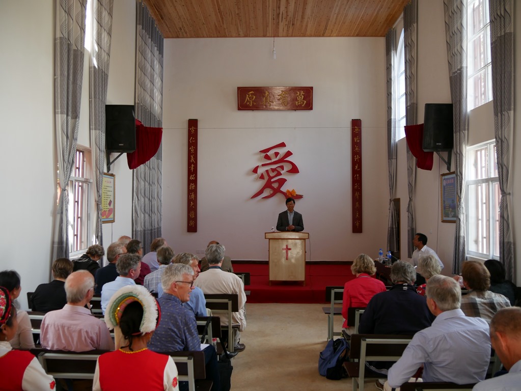 Vrijdag 16 oktober 2015. Vandaag bezoeken we als deelnemers aan de Kerk in Actie-predikantenreis naar China twee dorpen in het bergland van de provincie Yunnan, waar oud-studenten van de Bijbelschool in Dali de gemeenten als kerkelijk werker dienen. Het evangelie heeft deze dorpen pas enkele decennia geleden bereikt. In één van de dorpen kwam men vier jaar terug nog samen in een schuur, maar staat er nu een mooi kerkje—een deur hoog in de achterwand toont dat men hoopt op verdere groei: wanneer nodig wordt dat de deur naar de gallerij. Officieel is het nog een ‘ontmoetingspunt’ en niet een zelfstandige kerkelijke gemeente, maar inmiddels vallen er al weer andere ontmoetingspunten onder deze kerk.