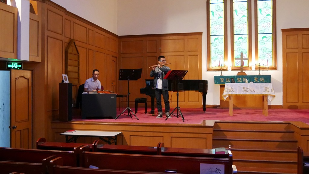 Maandag 19 oktober 2015. Vanmiddag bezoeken we als deelnemers aan de Kerk in Actie-predikantenreis naar China een seminarie net buiten Shanghai, het East China Theological Seminary. Hier worden predikanten en kerkelijk werkers opgeleid voor Shanghai en vier naburige provincies. Bovendien biedt het seminarie een opleiding kerkmuziek aan voor heel China. Eerst was dit een tweejarig programma alleen gericht op muziek, maar nu is het een vierjarig programma waarin gewone theologische vorming en kerkmuziek met elkaar verbonden worden, zodat afgestudeerden niet enkel “vrijwilliger die het kerkkoor leidt” kunnen worden, maar als voltijds pastor/kerkmusicus kunnen worden aangesteld in gemeenten. Wanneer wij het seminarie bezoeken, zijn net twee studenten in de kapel “Amazing Grace” aan het oefenen.