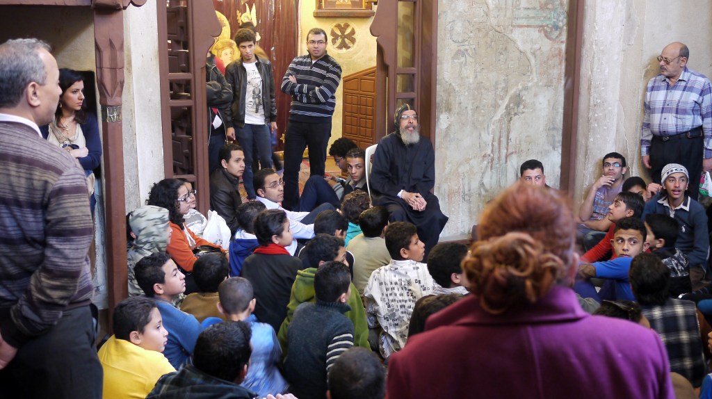 Op bovenstaande archieffoto (genomen in een ander klooster in 2014) ziet u hoe vandaag waarschijnlijk ongeveer zou zijn verlopen voor de vermoorde en gewonde christenen als deze verschrikkelijke aanslag niet was gepleegd: het klooster zou op deze vrije vrijdag ongetwijfeld hebben gekrioeld van kinderen en ouderen die met busladingen vol naar het klooster waren gekomen. Op een gegeven moment zou een monnik tegen de kinderen hebben gezegd: “En nu gaan jullie allemaal even zitten, want ik heb jullie iets te vertellen.” En dan had hij enkele hoofdzaken van het geloof uitgelegd. Daarna zouden de kinderen weer even hebben mogen rondlopen of op het parkeerterrein hebben mogen voetballen. En daarna zou men met elkaar hebben geluncht. – Zo althans ging het toen ik deze foto nam en zo heb ik het ook in andere Egyptische kloosters gezien. Maar vandaag waren er lieden die dit kinderkloostergeluk bij voorbaat meenden te moeten verknallen.