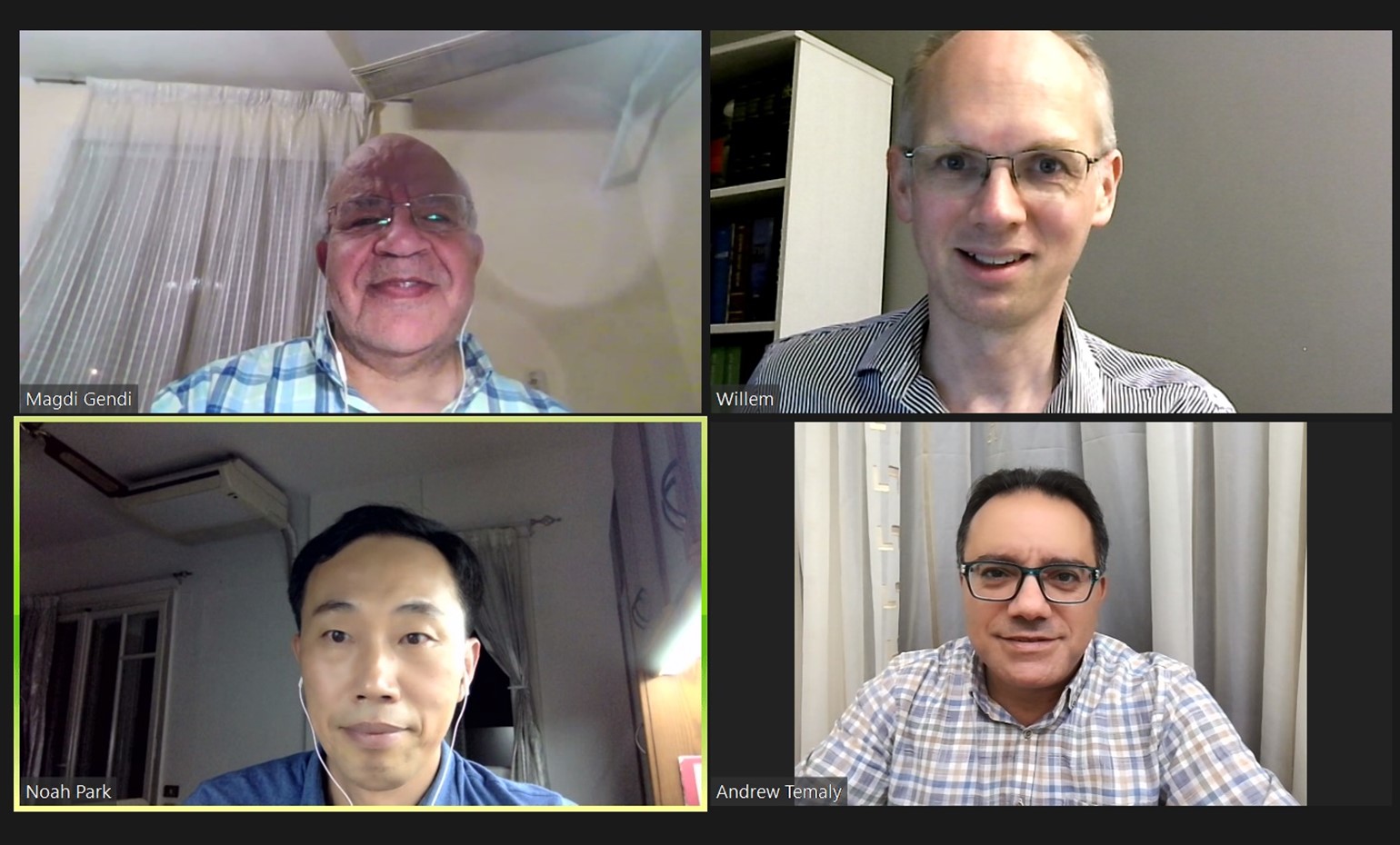 Voor drie studenten in onze Engelstalige vervolgmaster (Master of Theology, ThM) kwam het uitstel van juni naar september overigens wel goed uit omdat ze nu de kans hadden om deze zomer hun masterscriptie af te ronden. Omdat ze alle drie voor een oudtestamentisch onderwerp hadden gekozen, was ik van alle drie de begeleider. Het was hard werken voor de studenten en het begeleiden kostte mij uiteraard ook de nodige uren, maar het resultaat mag er dan toch zijn. Andrew Temaly (rechtsonder op de eerste foto) verdedigde twee en een halve week terug zijn scriptie over Zion in de Psalmen, ds. Gamil Fawzy (rechtsonder op de tweede foto; in januari 2019 was hij op uitnodiging van de GZB op bezoekin Nederland) verdedigde afgelopen maandag zijn scriptie over de identiteit van God in Ezechiël 38-39 en Bush Saber (rechtsonder op de derde foto; hij is momenteel in Nederland als deelnemer aan het Bridging Gaps-programma van de PThU en VU) verdedigde gisterenavond zijn scriptie over de metafoor van de arend in Deuteronomium 32:10-14. Momenteel vergadert het bestuur van het seminarie om onder andere het afstuderen van deze studenten formeel goed te keuren en morgen mag het dan officieel worden gevierd.